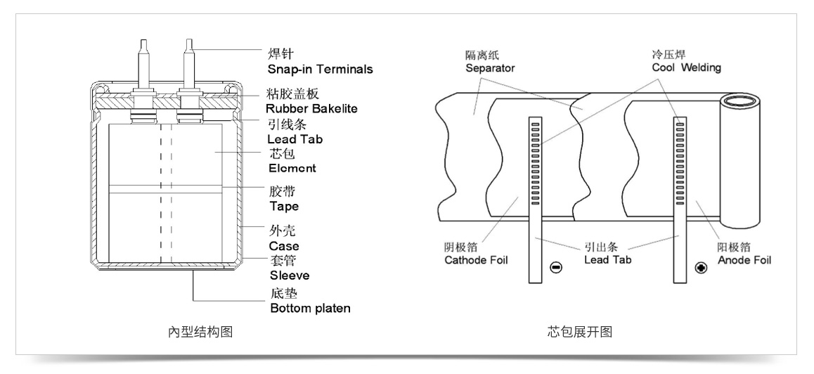CECTN電解電容印字信息中包含了牛角型電解電容的電壓、容量、溫度、壽命、焊針數量型號等眾多信息,詳細了解請點擊進入《牛角型電解電容料號說明》頁面。