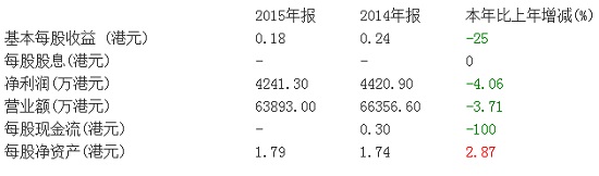 來源:恩達(dá)集團(tuán)2015年凈利4241.30萬港元 同比減少4.06%
