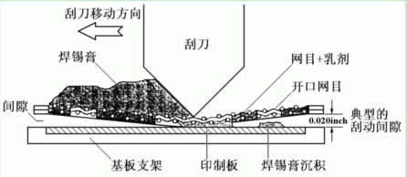 在印刷涂敷法中,直接印刷法和非接觸印刷法的共同之處是其原理與油墨印刷類(lèi)似,主要區(qū)別在于印刷焊料的介質(zhì),即用不同的介質(zhì)材料來(lái)加工印刷圖形:無(wú)刮動(dòng)間隙的印刷是直接(接觸式)印刷,采用剛性材料加工的金屬漏印模板;有刮動(dòng)間隙的印刷是非接觸式印刷,采用柔性材料絲網(wǎng)或金屬掩膜。刮刀壓力、刮動(dòng)間隙和刮刀移動(dòng)速度是保證印刷質(zhì)量的重要參數(shù)。