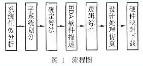 數字系統的設計采用自頂向下、由粗到細,逐步分解的設計方法,頂層電路是指系統的整體要求,下層是具體的邏輯電路的實現。自頂向下的設計方法將一個復雜的系統逐漸分解成若干功能模塊,從而進行設計描述,并且應用EDA 軟件平臺自動完成各功能模塊的邏輯綜合與優化,門級電路的布局,再下載到硬件中實現設計