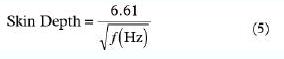 在高頻段,必須考慮一種稱為“趨膚效應(yīng)”的現(xiàn)象。趨膚效應(yīng)會引起電流流向?qū)Ь€的外表面——結(jié)果會使得導(dǎo)線的橫截面變窄,因此使直流(DC)電阻增大。雖然趨膚效應(yīng)超出了本文討論的范圍,這里還是給出銅線中趨膚深度(Skin Depth)的一個很好的近似公式(以cm為單位):