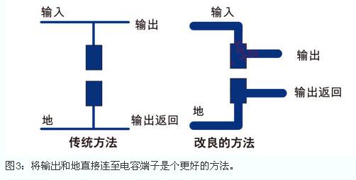 實際上,設計人員不應采用把導線從Vout和地引至電容的方法實現所謂的傳統版圖。這些導線將承載很大的交變電流,因此將輸出和地直接連至電容端子是個更好的方法。這樣交替變化的電流僅表現在電容上。連接電容的其它導線現在承載的幾乎是恒定電流,因而與di/dt相關的任何問題得到了很好的解決。地是另一個經常被誤解的難題。簡單地在“2層”放置一個地平面,并將全部地線連接到這一層不會有很好的效果。