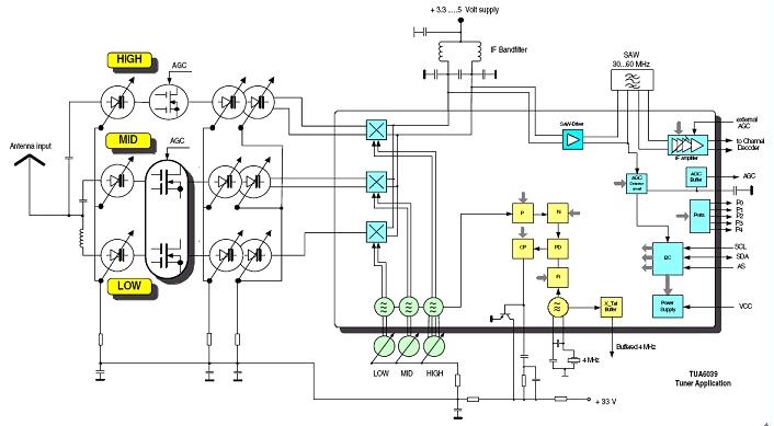 圖1:采用TUA 6039-2/TUA 6037的單變換調諧器架構圖。
