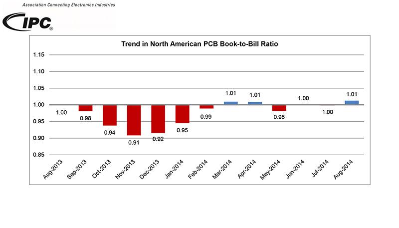 8月份北美地區(qū)PCB行業(yè)的訂單出貨比,已經(jīng)躍升到均衡值以上,為1.01。