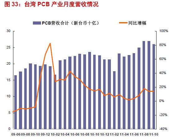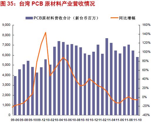 PCB 上游關(guān)鍵原材料玻紗布、鍍銅板價(jià)格降低。受此影響,臺(tái)灣PCB 原材料產(chǎn)業(yè)10 月份營收合計(jì)58.15 億新臺(tái)幣,環(huán)比下跌9.82%,同比下滑5.50%。軟板產(chǎn)業(yè)表現(xiàn)較好,10 月份實(shí)現(xiàn)營收29.45億新臺(tái)幣,同比增長31.55%,環(huán)比增長2.22%。行業(yè)普遍不景氣的情況下,依舊保持著整體穩(wěn)步向上的態(tài)勢。